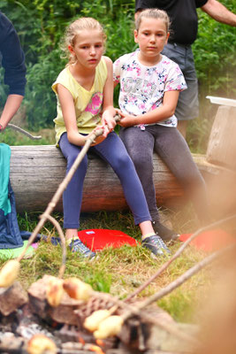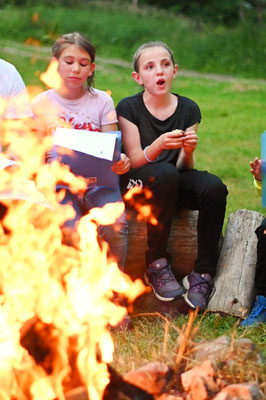 Heute gab es gleich zwei verschwundene Tiere, die von den Kindern befreit und gefunden werden mussten. Am Vormittag haben die Kinder den entführten Papagei von Captain Matze aus den Fängen seiner ehemaligen Crew befreit. Mit Hilfe von Briefen und Hinweisen ist ihnen das auch gut gelungen. Nachmittags haben die Kinder bei dem Spiel „Findet Nemo“ bei verschiedenen Stationen Buchstaben gesammelt, die ihnen am Schluss den Ort von dem kleinen Fisch verraten haben. Auf Wunsch der Kinder haben wir dann vor dem Abendessen noch eine Partie Bärenjagd gespielt. Am Abend gab es Dank unseres lieben Thomas ein stimmungsvolles Lagerfeuer mit selbstgemachtem Stöckerlbrot. Bis es dunkel wurde haben wir gemeinsam Lieder gesungen, und das schöne Feuer genossen.