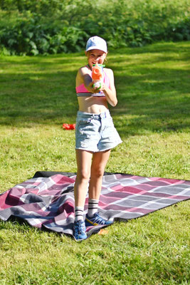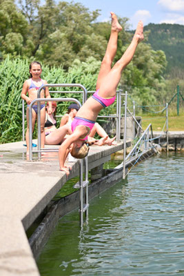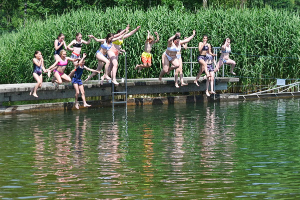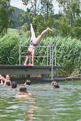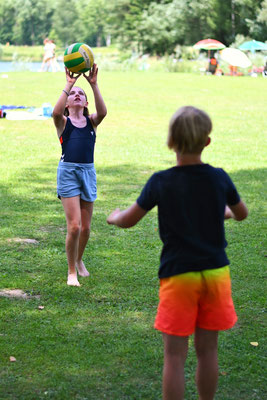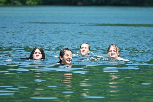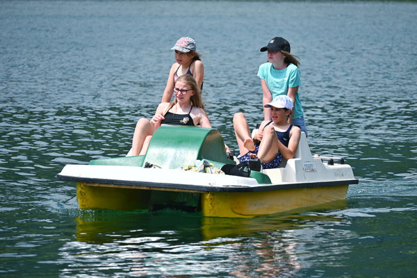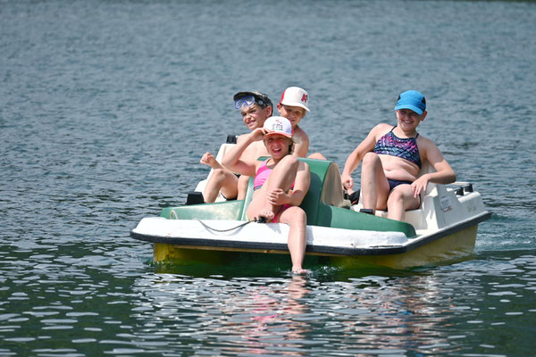 Den sehr sonnigen und heißen Tag haben wir heute beim wunderschönen Badesee verbracht. Gleich in der Früh sind wir alle zusammen hinunter spaziert, und haben uns dann sofort im kühlen Wasser erfrischt. Natürlich durften alle Kinder die wollten auch wieder eine Runde mit dem Tretboot fahren. Am Abend mussten die Kinder dann bei dem Spiel „beste Crew“ mit Hilfe von Minispielen, Captain Matze davon überzeugen, dass sie teamfähig, und seiner Crew würdig sind.